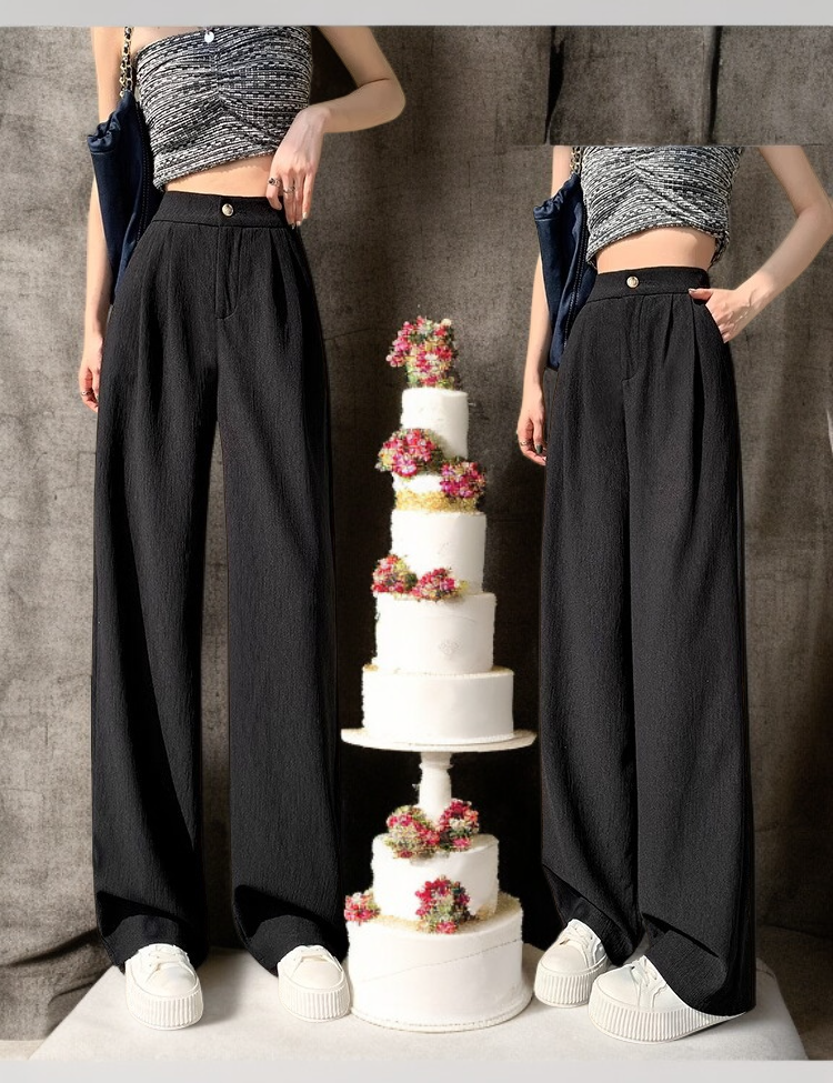 ● 여름철에도 시원하게 착용 가능한 아이스 드롭 소재로 제작되어 장시간 착용에도 쾌적함을 유지합니다. ● 하이웨스트 디자인과 와이드 핏이 다리를 길고 슬림하게 연출해주어 체형 커버에 효과적입니다. ● 정장 팬츠 스타일로 오피스룩부터 데일리룩까지 다양한 스타일링이 가능해 활용도가 높습니다. ● 구김이 적고 가벼운 소재로 관리가 편리하며, 활동성이 뛰어나 편안한 착용감을 제공합니다.